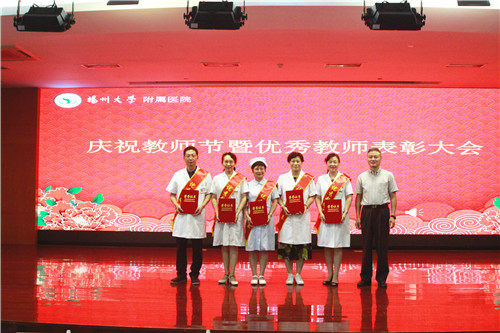 为庆祝第36个教师节,表彰近年来在教育教学工作中涌现出的优秀教师,9月8日下午4:00,扬州大学附属医院在西区医院第一学术报告厅举行庆祝教师节暨优秀教师表彰大会。院领导殷旭东、张文捷、蔡拥军、刘艳秋、王正兵、龚开政、丁岩冰,院16个临床教研室主任、教学秘书、教学干事、本科生导师,院22个住培基地主任、教学主任、教学秘书、住培生导师,院硕士生、博士生导师,院教学名师培养对象,2020年院临床技能培训教官,所有受表彰人员,学生、规培生代表等共计200余人参加会议。