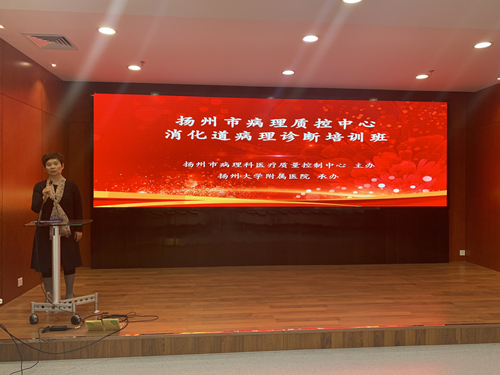 11月8日,由扬州市病理质量控制中心主办,我院病理科承办的扬州市病理质控中心消化道病理诊断培训班在西区医院第二学术报告厅举办,来自全市20家医院病理科近60位病理医师参加会议。副院长刘艳秋、市卫健委医政处处长缪彦致开幕辞。病理科主任丁永玲主持会议。